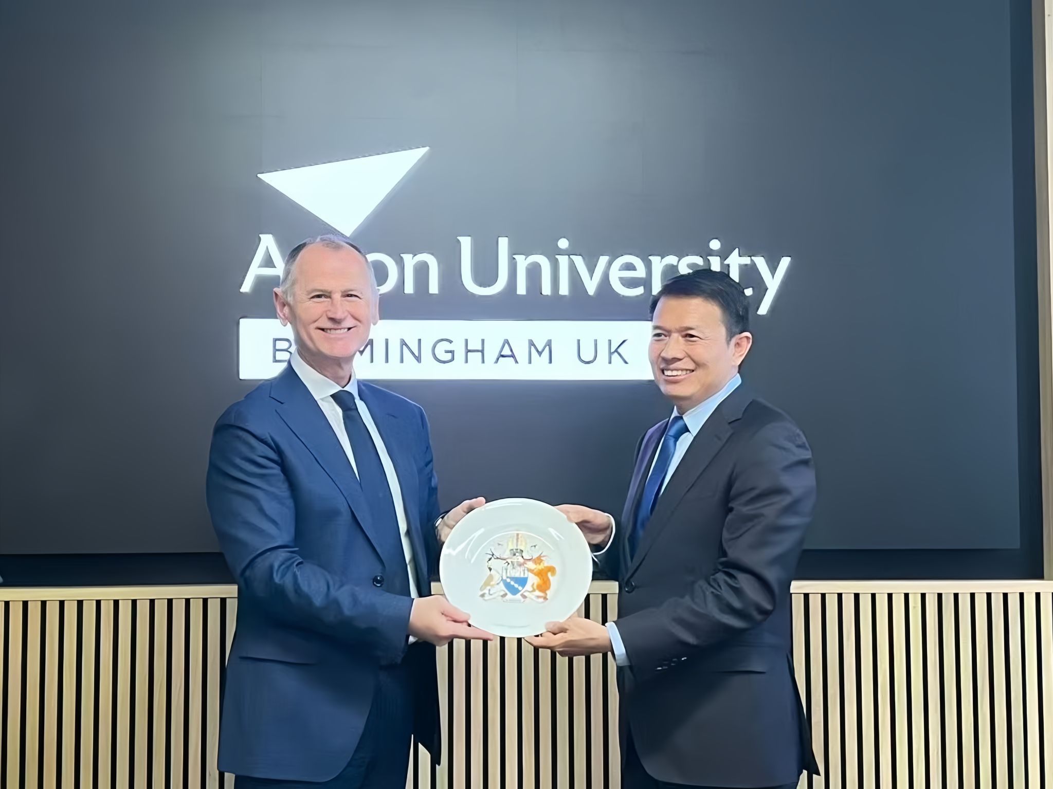 访问阿斯顿大学期间,季波与该校校长Aleks Subic、副校长OSama Khan、副校长Gurpreet Singh Jagpal等进行会谈。季波介绍了学校近期的发展情况,尤其是打造“学院+研究院+基地”办学育人新模式,全面推进“2+2+N”教育教学模式改革的情况。Aleks Subic重点介绍了阿斯顿大学在创新创业人才培养及成果转化方面的优势特色。双方高度认同彼此办学理念,交流气氛十分热烈,季波还与Aleks Subic击掌为证,一致表示将大力推动两校在联合教育教学、师生互访交流、科技协同创新等方面的深入合作,持续扩大合作范围、深化合作层次,并计划定期轮流举办中英双边学术论坛,进一步夯实两校战略合作伙伴关系。